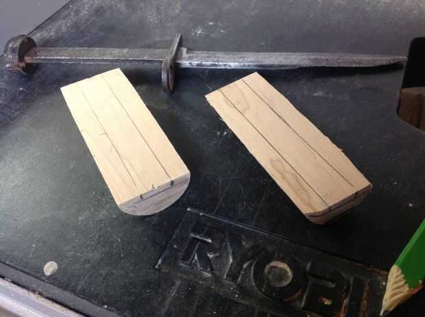 Usando mi mesa de sierra, atravesada la pieza redondeada de abedul. Configurar la altura de la cuchilla para cortar sólo medio camino a través de a podría mantener con seguridad la orientación de la hoja/madera.