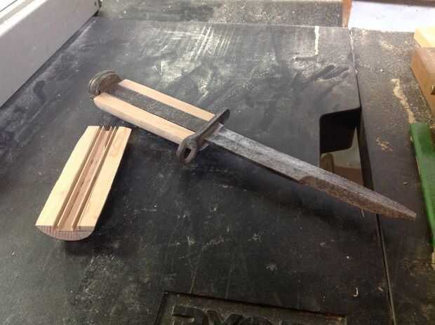El esquema de eje de manija fue trasladado al interior del corte redondo y la madera fue quitada para acomodar el eje de la manivela.