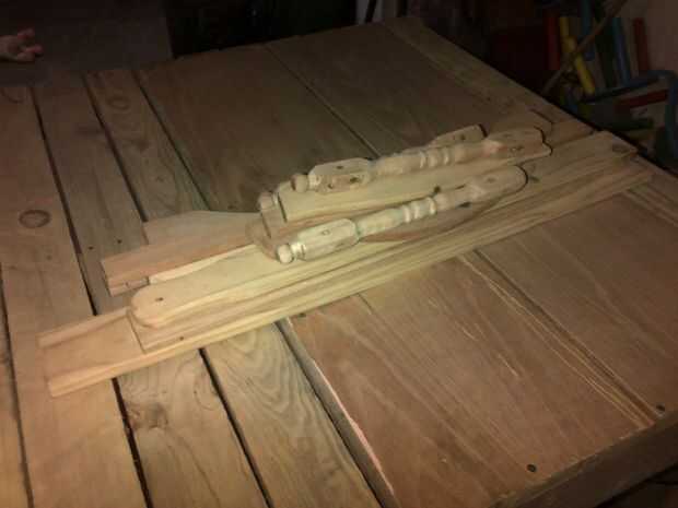 Ahora esto es donde empezó la diversión... Individualmente lijar todas las piezas sueltas y los apilados para arriba (como en la foto) cuando mi cuñada vino a visitar. La mirada en su rostro fue impagable. Podía ver esa mirada de OMG!!! PESO???!!!