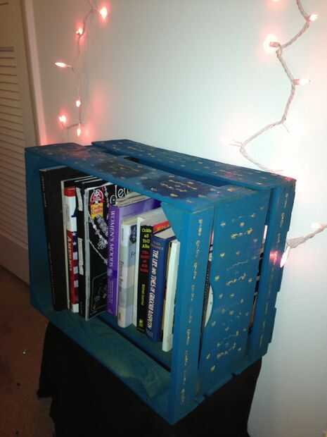 y listo! Un golpe encima de cajón de madera viejo ha transformado en una estantería.