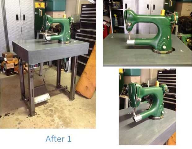 Construí una nueva tabla reutilizando el hardware del metal y las piernas. Barnizadas el cuerpo de la máquina de coser así como limpieza y alineación de la transmisión mecánica de la máquina de coser. Por último, he añadido un nuevo motor de servo para controlar la velocidad.