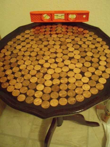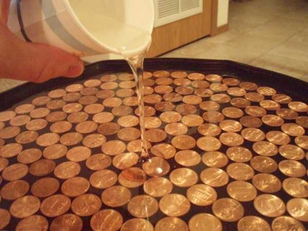 -Cuando las monedas se pegan en el, es hora de poner en la barra superior epoxy.