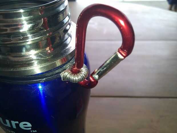 compré una botella de agua filtrada para el senderismo (llamado tramping aquí en Nueva Zelanda). Es una muy buena botella con un anillo del accesorio plástico muy cutre. Era obvio que no duraría mucho tiempo. Para protegerla y hacerla última usé alambre de fusibles como "armadura" contra desgaste.