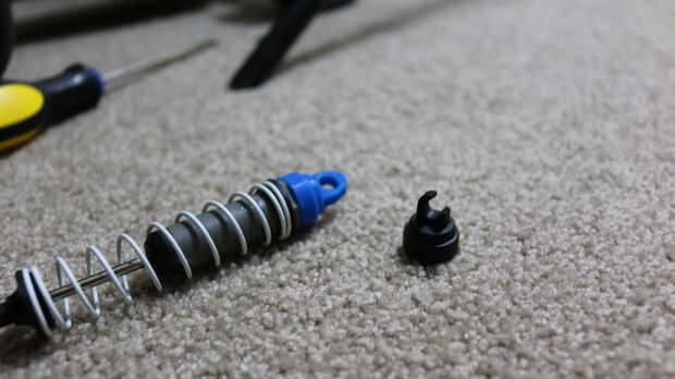 Desatornille el amortiguador roto, usé pinzas para sacar la tapa.