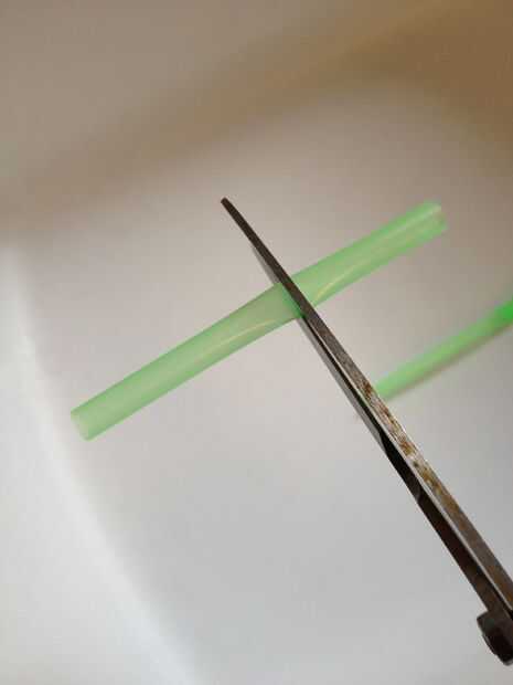 Use tijeras para cortar la paja a una longitud apropiada. He hecho un poco menos de 2 pulgadas de la mina.