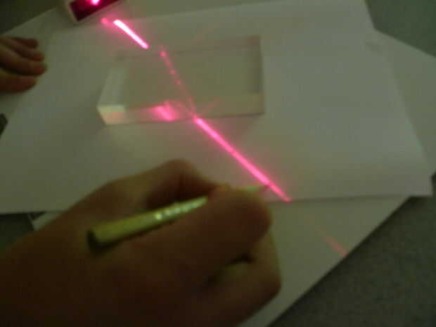 Para marcar hacia fuera de la viga, toma su lápiz (Asegúrese de que está afilado) y marcar un punto en un extremo de la línea, uno cerca de la mitad y uno en el otro extremo de la línea. Hacer esto para las vigas de ambos lados del bloque, teniendo cuidado de que no lo muevas.