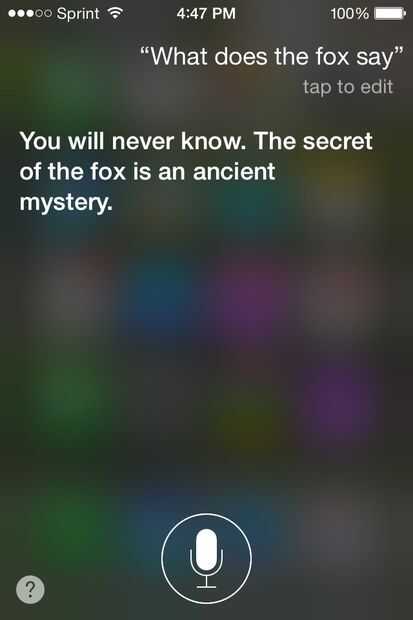 Pedimos Siri "lo que el zorro dice?" y usted conseguirá las respuestas anteriores.