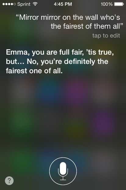 Pedimos Siri "Espejo, espejo en la pared, que es la más bella de todas?" y obtendrá la respuesta anterior. Una gran manera de animarte después de tener un día de mal pelo.