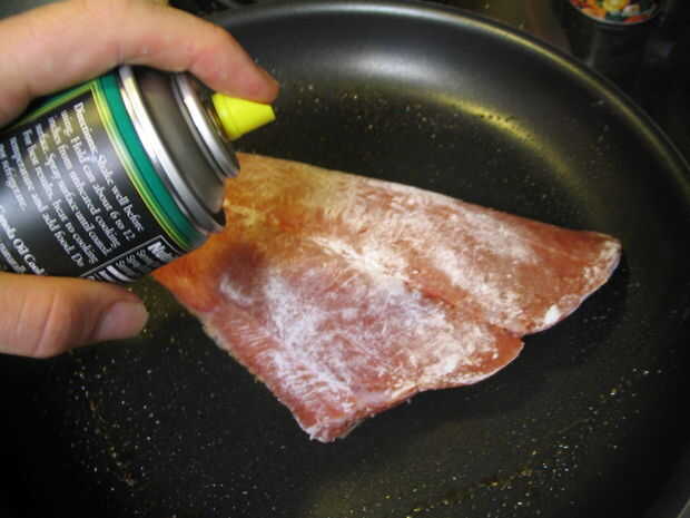 Rociar la superficie del pescado con el aceite de canola. Esto garantizará que tiene suficiente aceite para que no se peguen al tirón más adelante y ayudará a que especias se adhieren a la superficie.