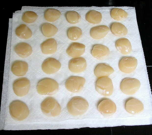 Descongelar las vieiras si es necesario. Dan sus vieiras un enjuague de agua fría rápida, luego les ponga sobre toallas de papel para secar, dándoles la vuelta para secar ambos lados. Puede dejar aquí un poco si es necesario; solo no te olvides de ellos.