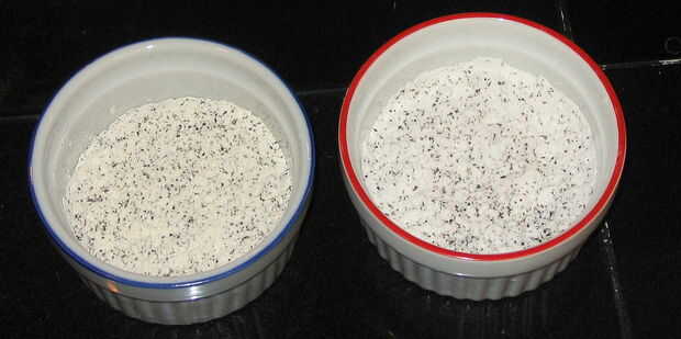 Generalmente usar harina, pero hizo hoy un funcionamiento paralelo con fécula de patata. Los resultados fueron bastante similares, pero preferimos un poco las vieiras sumergido de almidón. Esta preferencia podría desaparecer en un experimento de doble ciego, pero no podemos ser molestados cuando tiene hambre.