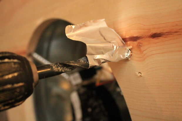 Contador 2.) se hunden los agujeros. He medido la profundidad de la broca y utiliza la cinta más cercano que pude encontrar para marcar la profundidad adecuada.