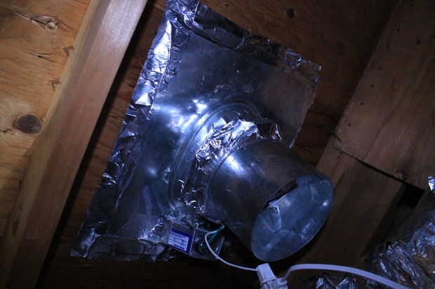 una de las tareas de mi caída es aislar el ventilador de casa entera en nuestra casa.  Previamente he construido una caja en el ático de placas de espuma, pero usarlo es un dolor porque tengo que vaciar un armario para llegar a la puerta del ático y