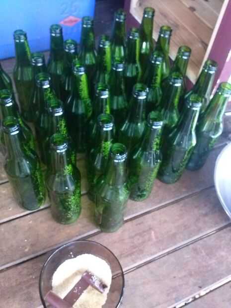 Después de cebado cada llenar hasta 30mm desde la parte superior de la botella y tapa. Se pueden utilizar cualquier botellas te gusta a veces reutilizar un zumo de vidrio de la botella y sólo girar las tapas en.