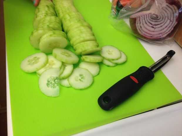 Asegúrese de lavar sus verduras y bajar el nasties - esto es algo que se me olvida constantemente. Me sorprende he sobrevivido a este largo pero afortunadamente tengo a mi esposa que me recuerdan a limpiar los alimentos. Ni que decir he sido prohibida de la mayoría de las actividades de cocina. También, las zanahorias y el pepino se pelan antes de picarlas.
