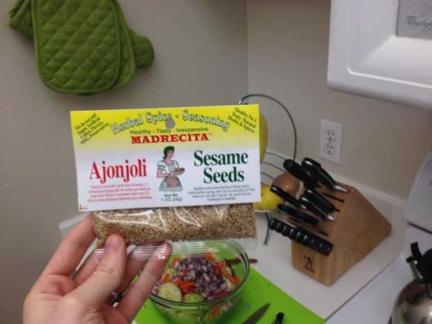 En un recipiente aparte, vaya por delante y combinar el aceite, vinagre, perejil, estragón, sal y pimienta. También, cuando se trata de las semillas de sésamo tiene la opción de les tostado o utilizarlos crudos - ambos son buenos.