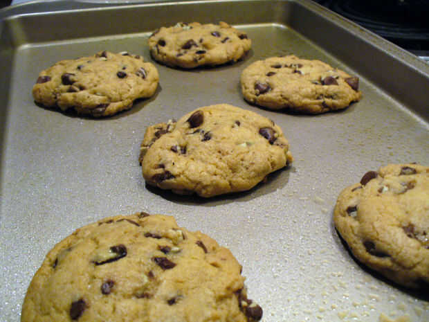 6. hornear de 14 a 17 minutos en el horno precalentado o hasta que los bordes se tuestan ligeramente. Enfriar a hornear durante unos minutos antes de transferir a alambre bastidores se enfríe por completo. Esto se forma porque todos los chocolates necesita unos cuantos minutos extras para endurecer, o de lo contrario se enfriará con los cantos de los alambres en la parrilla.
