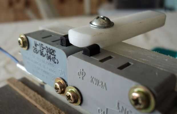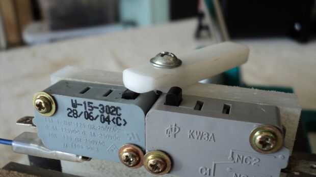 Quería un centro-off unipolar de doble acción de lanzar. Por supuesto tal interruptor está disponible de proveedores, pero eso es no el punto de este Instructable, aquí se aprende haciendo y también adoptado es basura no-querer no, así el canal proporcionará para la mayoría de las necesidades del proyecto. Estudio de las imágenes y tenga en cuenta que el brazo actuador tiene una muesca de extremo que sirve para dos propósitos: deprime fácilmente los interruptores de presión cuando se gira el botón y permite espacio para un centro de función. Presentar un ligero bisel en cada lado de la ranura facilita la acción sin interferencia. Fuerza de retorno del botón es suficiente para mantener la posición durante la operación. Para la base de la Asamblea de interruptor utilicé una pieza de la vieja tabla de cortar de polietileno, pero cualquier plástico grueso o madera se sirve así. Usé los contactos etiquetados N.O. (normalmente abierto) y C (común), como sólo quiero la conducción cuando el botón es presionado.