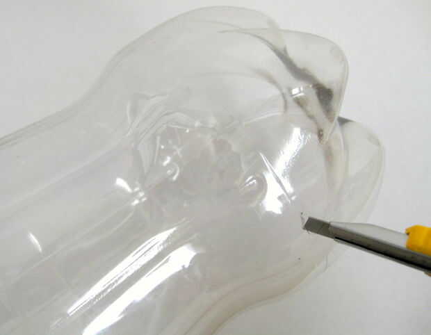 Tip: En una de las botellas, puede que desee hacer una muesca pequeña, triangular, por lo que es más fácil de averiguar cómo volver a poner la botella juntos más adelante.