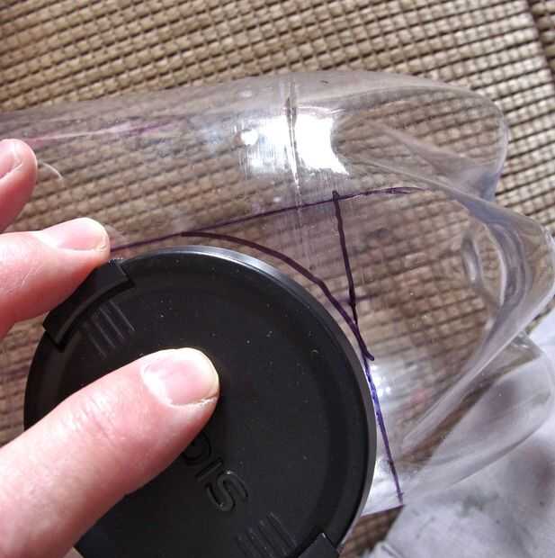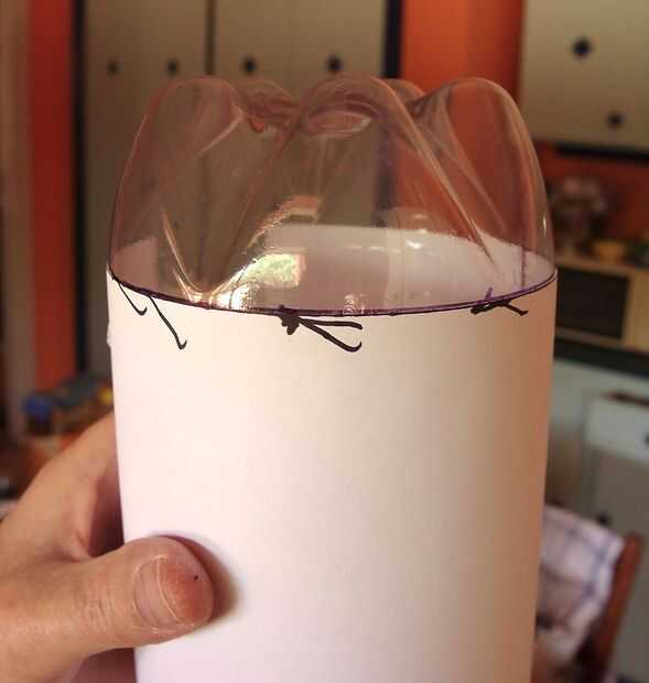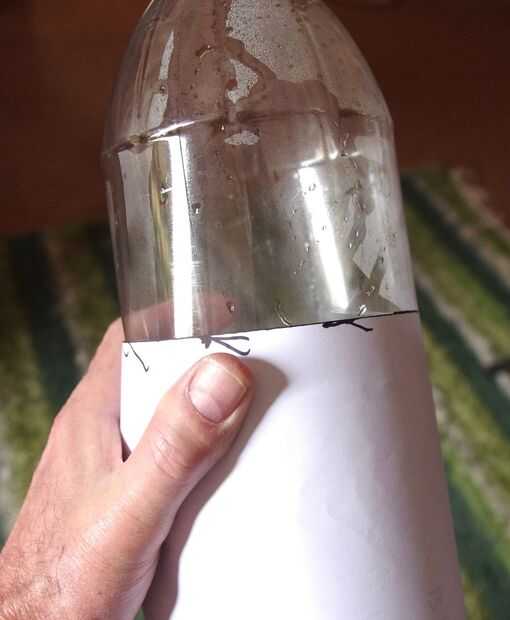 Primero, trace una línea alrededor de la botella de 160 mm de la parte inferior. Montado un pedazo de papel de A4 alrededor de la botella para guiar la pluma (primer cuadro). Repita el proceso, creando una línea de 45 mm de la parte inferior de la botella (segunda foto).