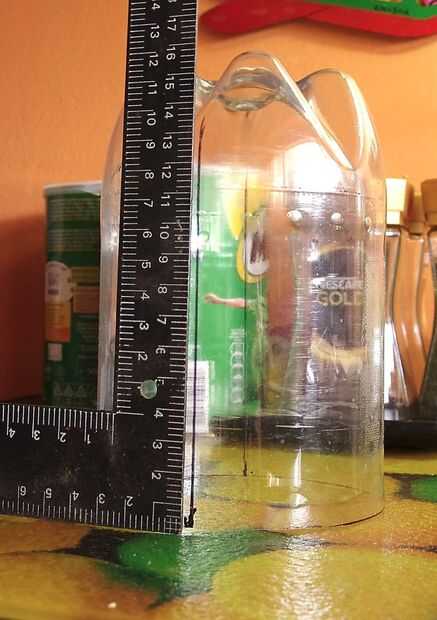 Luego corte la parte superior de la botella a lo largo de la línea superior con un par de tijeras. No corte la parte inferior.