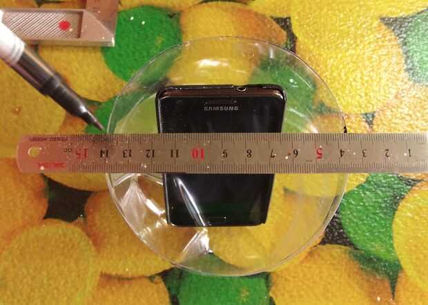 Ahora coloque el teléfono en la botella (tercera imagen) para que quede bien con su fondo contra dos de los golpes y su espalda contra la parte posterior de la botella, así la posición que se utilizará en más tarde.