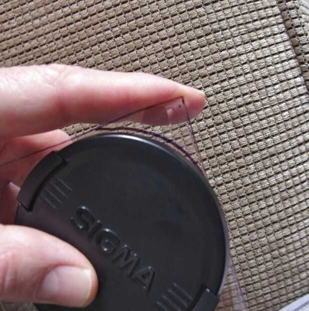 Antes de llegar para las tijeras, primero encontrar un objeto redondo apto para redondear en las esquinas de los cutlines (dos últimas fotos). En mi caso la tapa de la lente que estaba usando para tomar estas fotos era el tamaño perfecto.