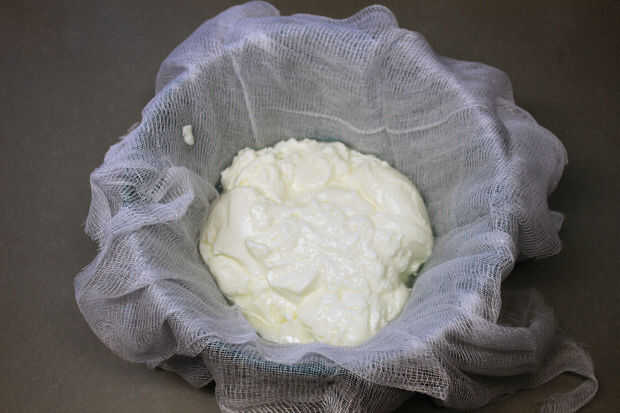 No tarda mucho en obtener suficiente suero para los refrescos, pero mina configurar durante la noche por el labneh.