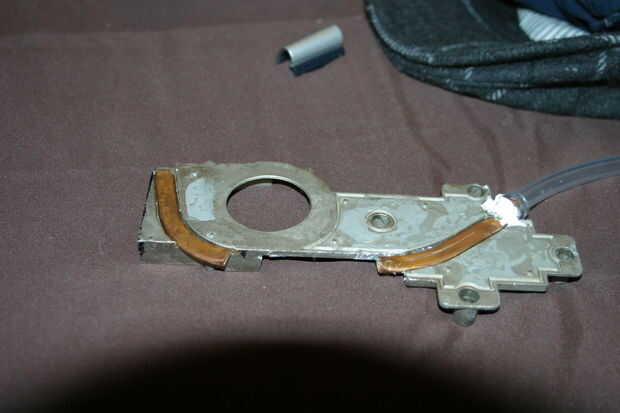 El compaq tiene un solo tubo de cobre en la parte superior. Yo corte una sección de la misma. Luego el extremo cortado. Entonces quité la malla de cobre dentro.