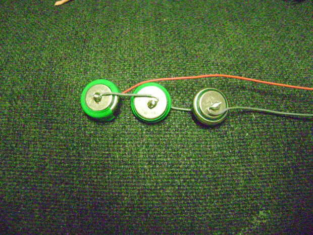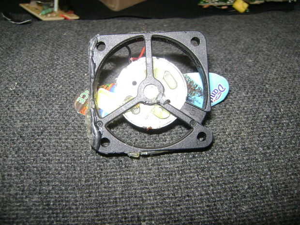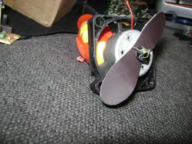 Primero soldado entre sus baterías recargables, que luego montado el ventilador detener la hélice (hecho con un trozo pequeño de plástico) y con un poco de pegamento fija soporte de hélice.