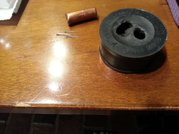 Obtener una buena Junta es difícil!  Pasé por varios intentos de iteraciones antes de una combinación de conocimientos de The home depot y Steve en ps1 me dio la solución perfecta. Utilice sus exceso pedazos de metal de los tubos cortados. Corte a aproximadamente una pulgada (menos obras) y su Junta del tirón por lo es cara abajo. Lugar de golpe en la localización que usted quiere el tubo para enrutar a través de. considere poner una toalla u otro amortiguador en el medio y thwack con martillo. Retire el exceso de goma del orificio. Repetir según sea necesario para los agujeros adicionales (tenía dos golpes diferentes y dos agujeros).