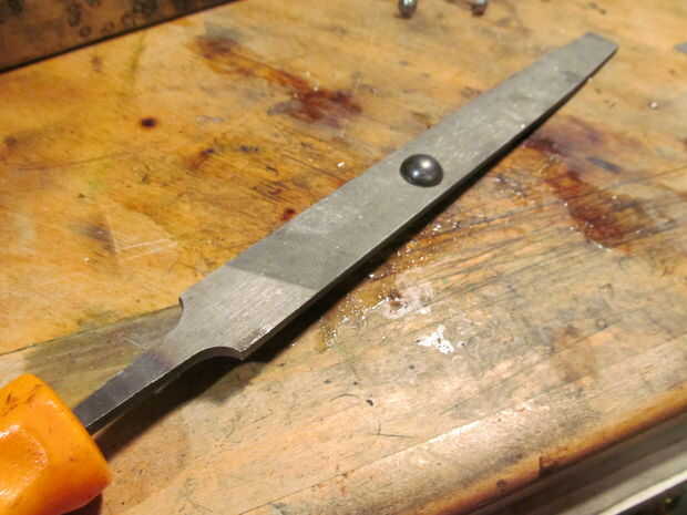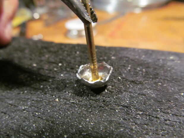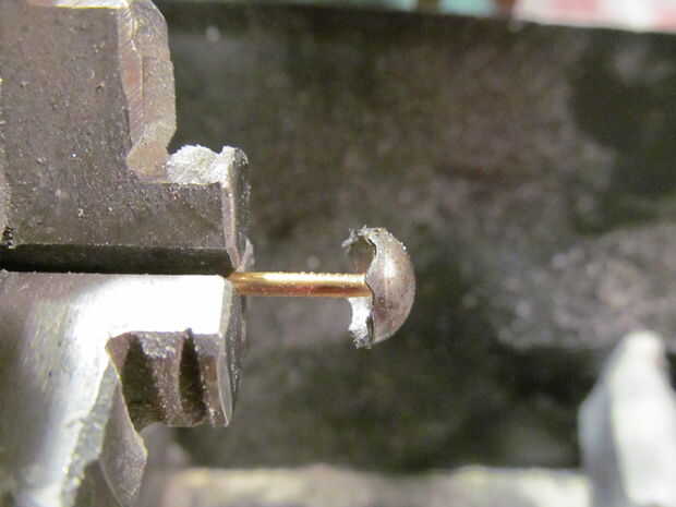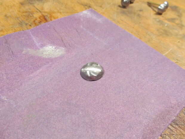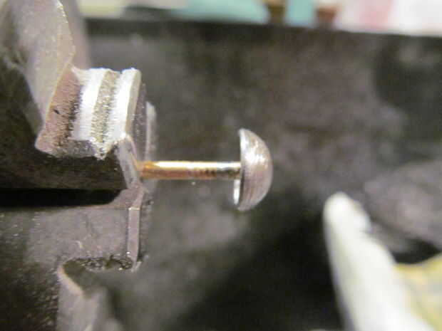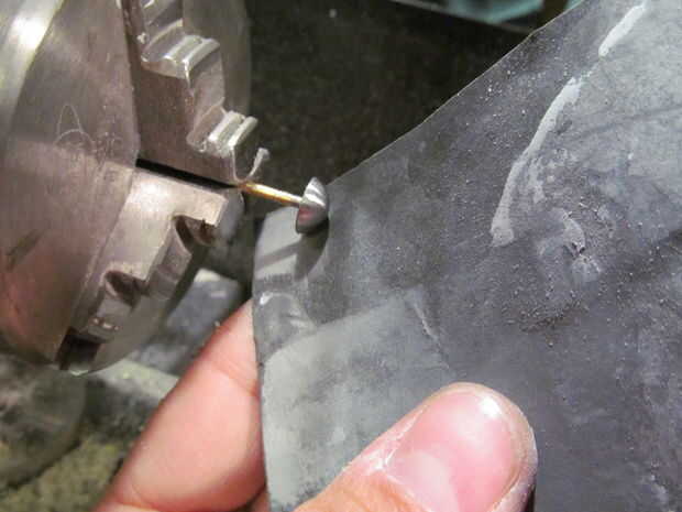 Para limpiar los bordes sueldan las mitades más pequeñas a un clavo y montado en mi torno. Usé un archivo para eliminar el borde dentado. Las mitades más grandes yo ante hacia abajo un archivo sobre una superficie plana.