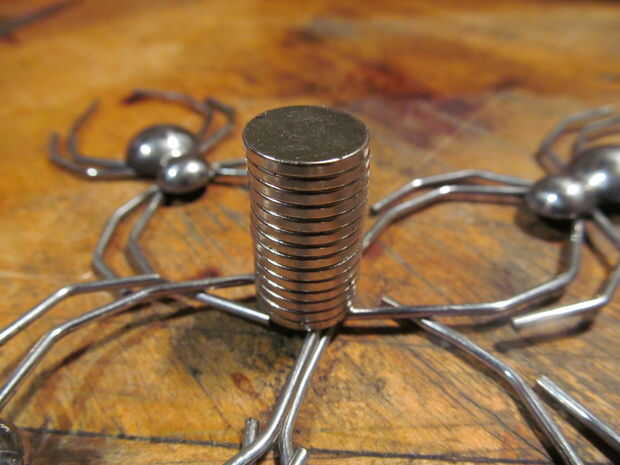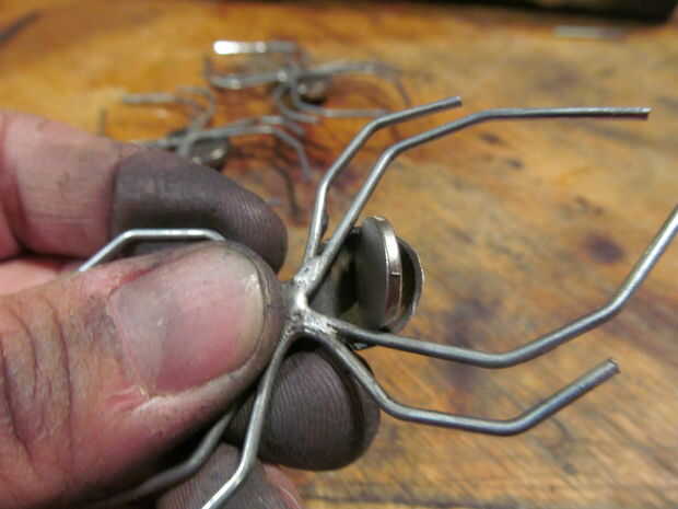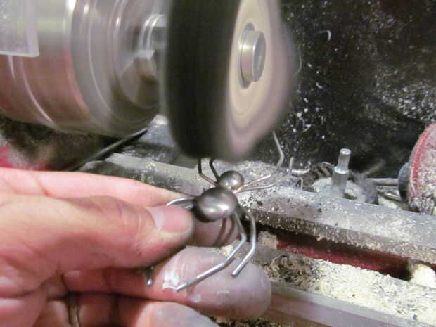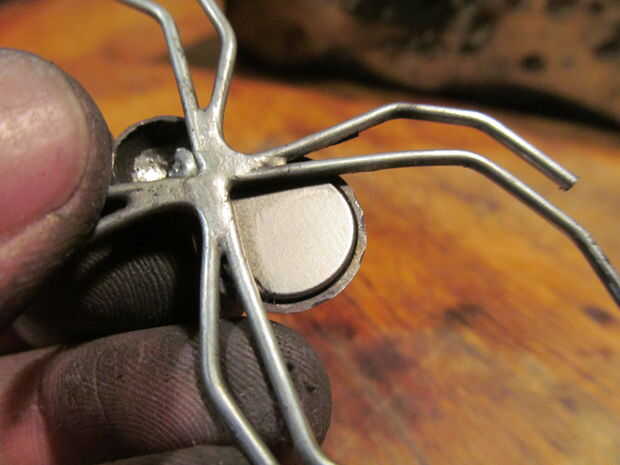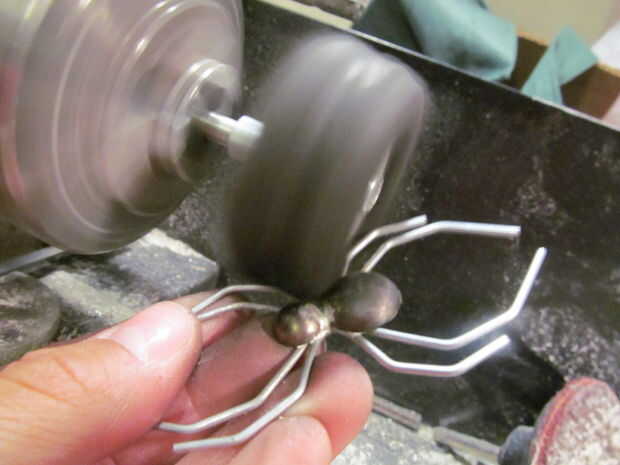 Usando una rueda que pulimenta y compuesto para pulir pulir el metal a un brillo. Lo último que hice fue imanes de neodimio de deslizamiento en cada araña.
