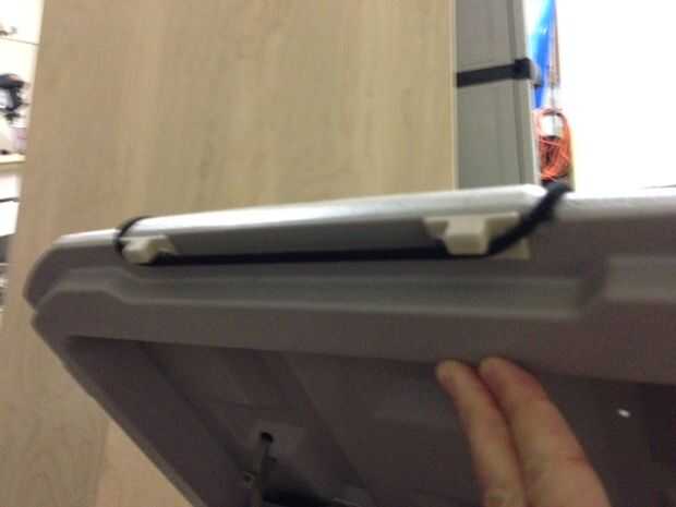 A continuación necesitarás instalar las puntas de la tapa del labio. Estos dan el cable algo que envuelva al atar su engranaje en. Coloque estas cerca del borde como se muestra en las fotos que desee ser capaz de fácil agarre y abra la tapa. Más pop-remaches por favor.