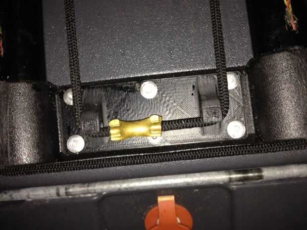 Enrosque el cable de descarga a través de los agujeros de la ' clam cleat ' desde arriba hacia abajo. Usted puede necesitar fundir y darles forma para caber fácilmente pero los agujeros o utilice un juego de alicates de punta. Ahora tenemos que averiguar el tamaño de nuestro lazo de amarre.