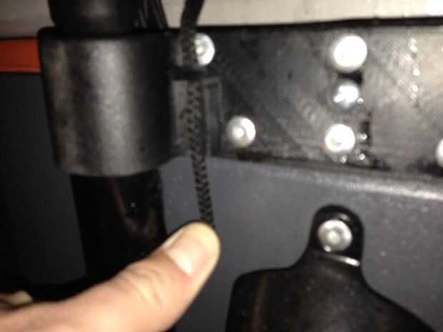 Echa un vistazo a la segunda imagen y observar cómo el bucle del cable se guarda cuando no esté en uso. Desea que su bucle para estirar muy ligeramente en esta posición. Me uní a mi cable junto con un pedazo prensado de tubos de latón que tenía por ahí, pero nada está mal con un nudo simple.