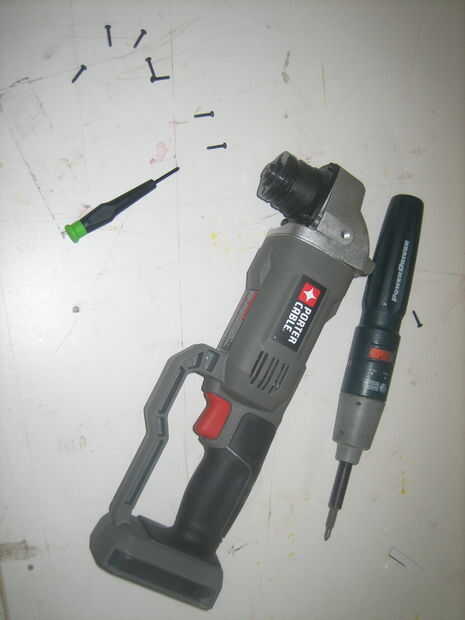 1. romper la amoladora angular quitando el protector de la amoladora, mango y la sección negra que los hilos de rosca en el eje roscado.