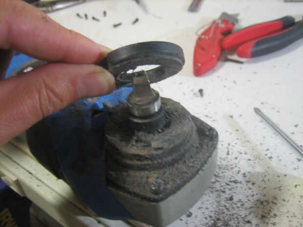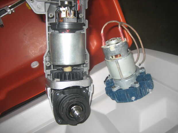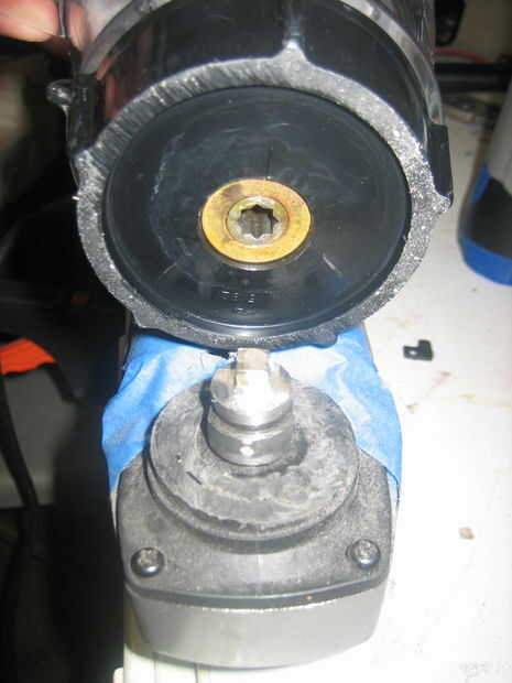 Usando una sierra o sierra de cinta corte el exceso cubierta plástica que se extiende más allá de la carcasa del motor. Ahora tenemos un motor poco agradable con eje que podemos instalar en la tapa.