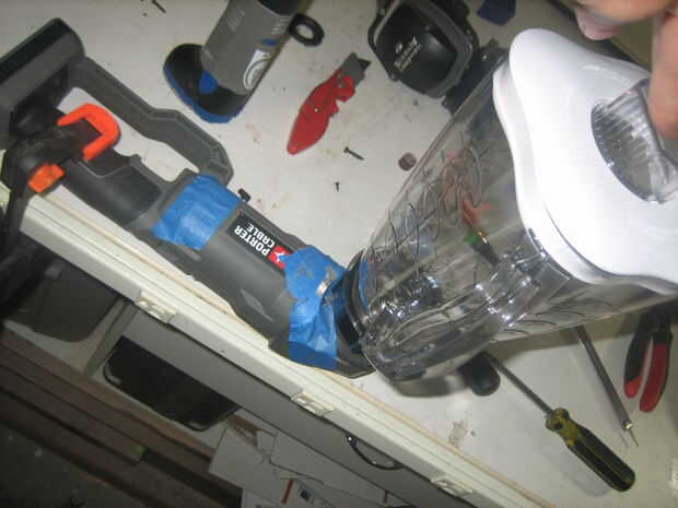 Utilizando una Dremel y un accesorio de la rueda de corte necesita ahora forma el eje de la base de la licuadora puede conectarse fácilmente y extraerse el titular de la licuadora. Esto se logra mediante el redondeo de las esquinas del lado del eje y luego redondeando la parte superior también. Ahora cuando la base de la licuadora se coloca en el eje fácilmente la guiará a en la abertura.