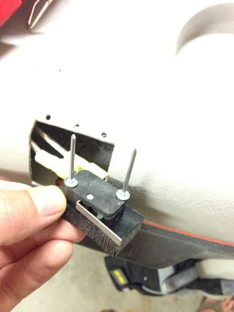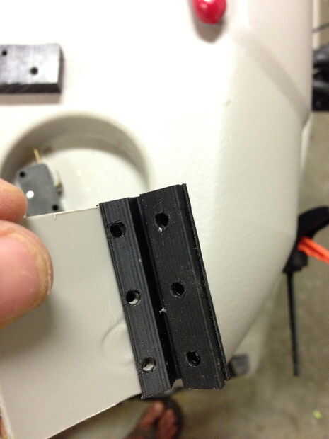 Necesitaba subir la altura de mi interruptor momentáneo ligeramente para que la aleta de bisagra golpearlo correctamente. Utiliza una pieza de plástico que calza un poco, luego perforar los agujeros para un remache 5/32 pop que quepa perfectamente el interruptor momentáneo. Necesita alinear cuidadosamente la ubicación del interruptor momentáneo con la posición de la aleta de bisagra. Cuando tengas tu posición perfeccionado, el taladro y el remache pop en su lugar. Vuelva a colocar la aleta de bisagra en lugar y empuje un montón de veces. Ahhhhhh... bien hecho!