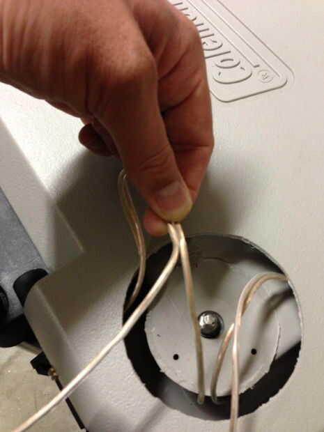 Ahora que tenemos una buena apertura, permite llevar nuestras conexiones eléctricas. Corte vertical corte aproximadamente 1/2" altura y 1/4" de ancho en la parte posterior de la tapa directamente sobre el soporte de batería para su cableado para entrar en la tapa. Si haces demasiado pequeño (como hice al principio) el cableado será filtrado y prensado con cada apertura de la tapa y será eventualmente rotura así que date a una pequeña sala.