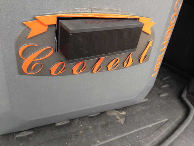 Dicho esto, recoger cualquier tamaño powered Bluetooth altavoz que desea Asegúrese de que es menos de 2" de espesor. Refrigeradores más cerca tienen mucho espacio para aislamiento en la parte delantera y es muy simple hacer. Si le sucede que tiene el mismo altavoz y refrigerador como utiliza, usted simplemente puede imprimir el archivo de la plataforma de su elección, corte un agujero y listo. Primero hizo una versión para sujetar el altavoz, y luego más tarde volví y amplió para mantener mi teléfono y llaves mientras estoy en la playa.