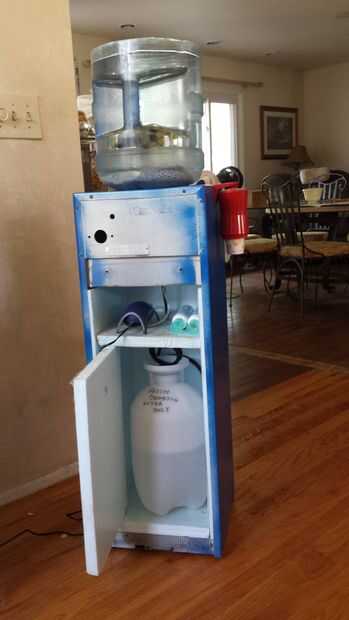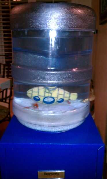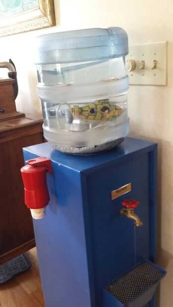 Inspirado en una escena pequeña en los años 80 película 'Real Genius'. Me volví un enfriador de agua de 5 galones en un tanque de los pescados que todavía suministra agua limpia potable. Muy simple de hacer, la cantidad de trabajo, tiempo y costo todo depende del tipo de refrigerador que elija para comenzar con y cómo lujo desea estar en el final. Construí un tiempo atrás y se olvidó de tomar fotos 'antes y durante el', así que puse los pasos de una forma sencilla y fácil para entender el formato.