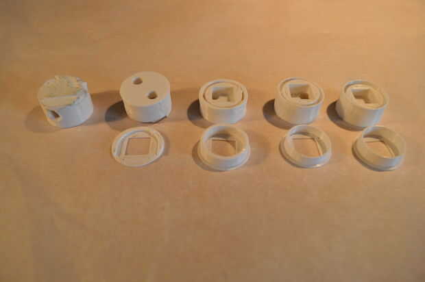 Nota: Es importante asegurarse de que el agujero cuadrado en la parte que soportará el centavo (ver más adelante pasos) es.5 en by.5 en o un poco más grande, en algún momento pueden encoger durante impresión en cuyo caso no cabrá el procesador del brazo a menos que se fija.