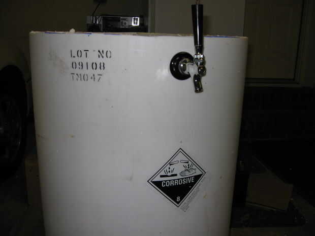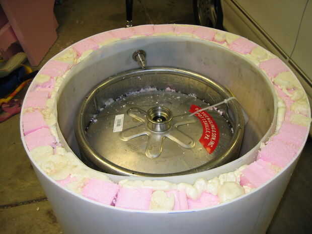 Poner el barril en la nevera y perfore un agujero para el tapper. Tendrá que ser por encima del borde del barril para dejar espacio para la manguera.