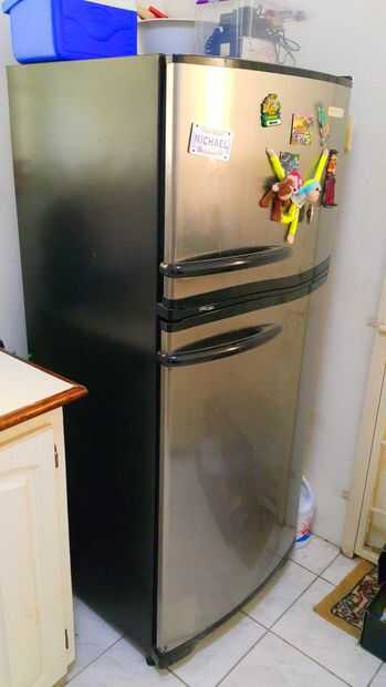 Idealmente un refrigerador inversor es la mejor pero mi viejo refrigerador necesita 300watts cuando en. Básicamente cualquier nevera hará pero la energía más eficiente significa una menor instalación solar.