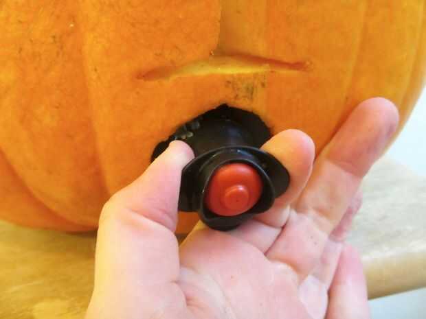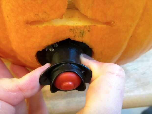 Tire de la boquilla utilizando el pulgar y el dedo índice en el exterior de la calabaza. Limpie los trozos de calabaza que se han pegado al pico.