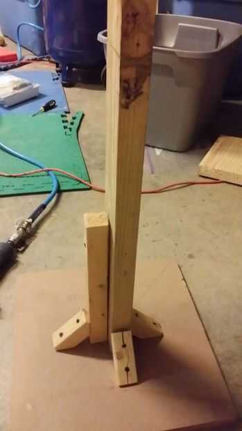 Con algunos restos de madera puesta en el garaje y unos 45 años, estaba una pieza de 4 x 2 hacer un soporte. No importa cómo alto. sólo tiene que utilizar lo que funciona para usted.