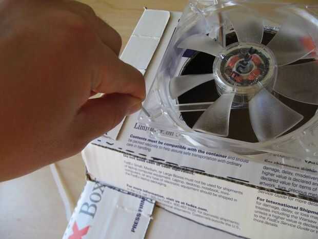 Utilizar abrazaderas de plástico pequeño para conectar los ventiladores a la caja. Realizar dos pequeños cortes y luego pase el zip lazos a través de luego bloquearla con el ventilador.