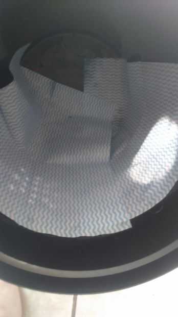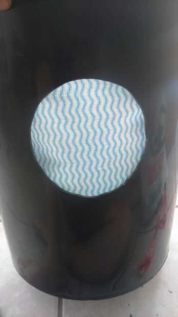 Ellos doble longitud sabio y pegar la parte superior justo encima del agujero. Asegurarse de que cubre el agujero y que un pedazo grande de toque el fondo del cubo.